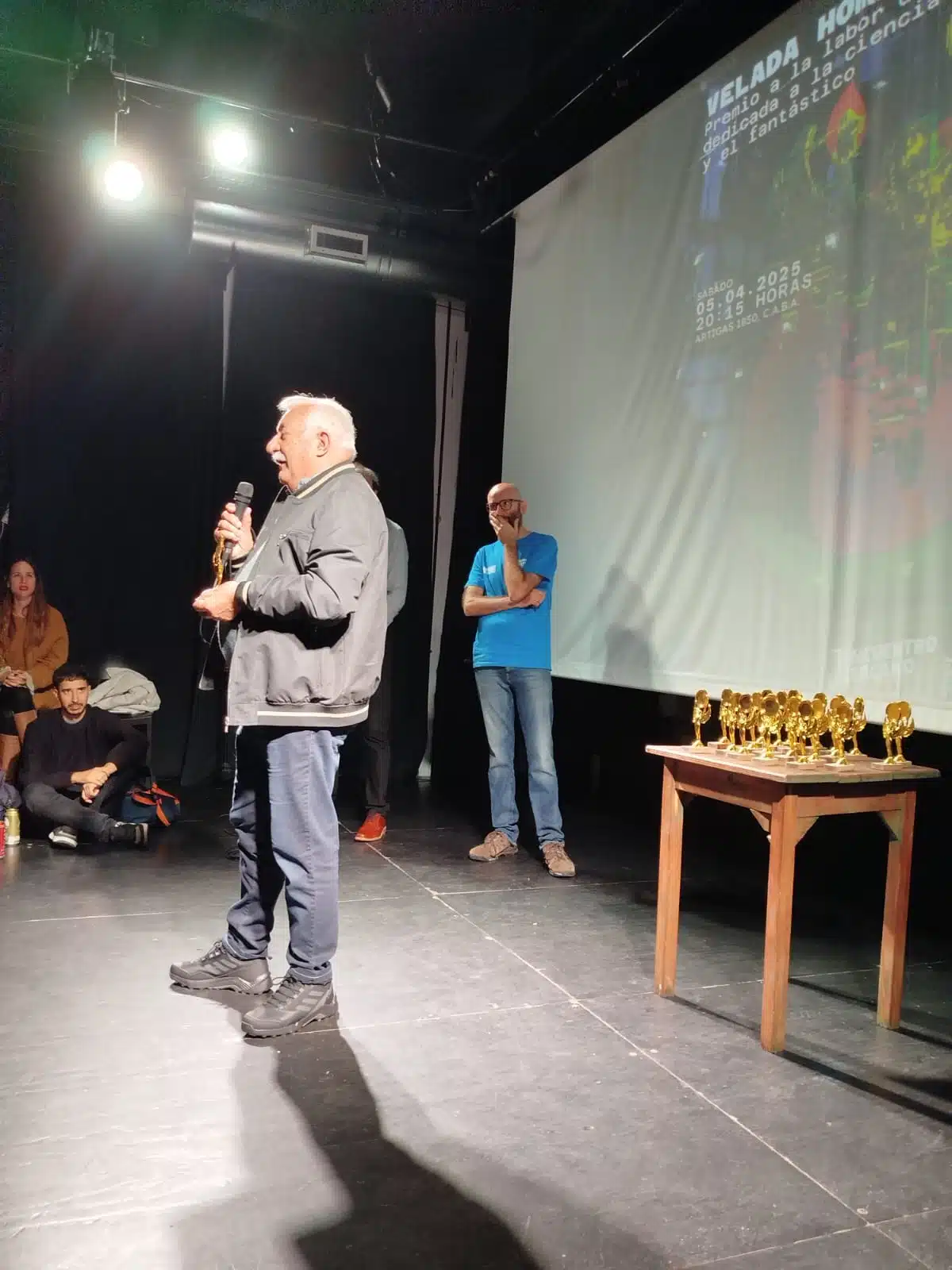 Una perlita aparte fue la “hinchada” espontánea que se armó entre el público. ¿Quiénes eran? Nada menos que ex homenajeados del año pasado, como José Massaroli, Stella Maris Fusé, Frank Szilagyi y varios más. Estaban ahí, dándolo todo: aplaudiendo, sacando fotos, alentando como si fueran familiares. Uno de los asistentes, un fan y lector de toda la vida, dijo entre risas: “¿Cómo hicieron estos pibes para reunir de nuevo a Viglino, Itzcovich, Fusé y Gaspar González, todos de Umbral Tiempo Futuro, 48 años después? ¡Es un laburo monumental!”. Y se fue feliz, o como él mismo me lo resumió: “Re contra feliz”.
