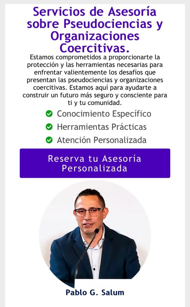 «ASESOR EN PSEUDOCIENCIAS» Y «ORGANIZACIONES COERCITIVAS». Así se presenta Pablo Salum en su sitio web.